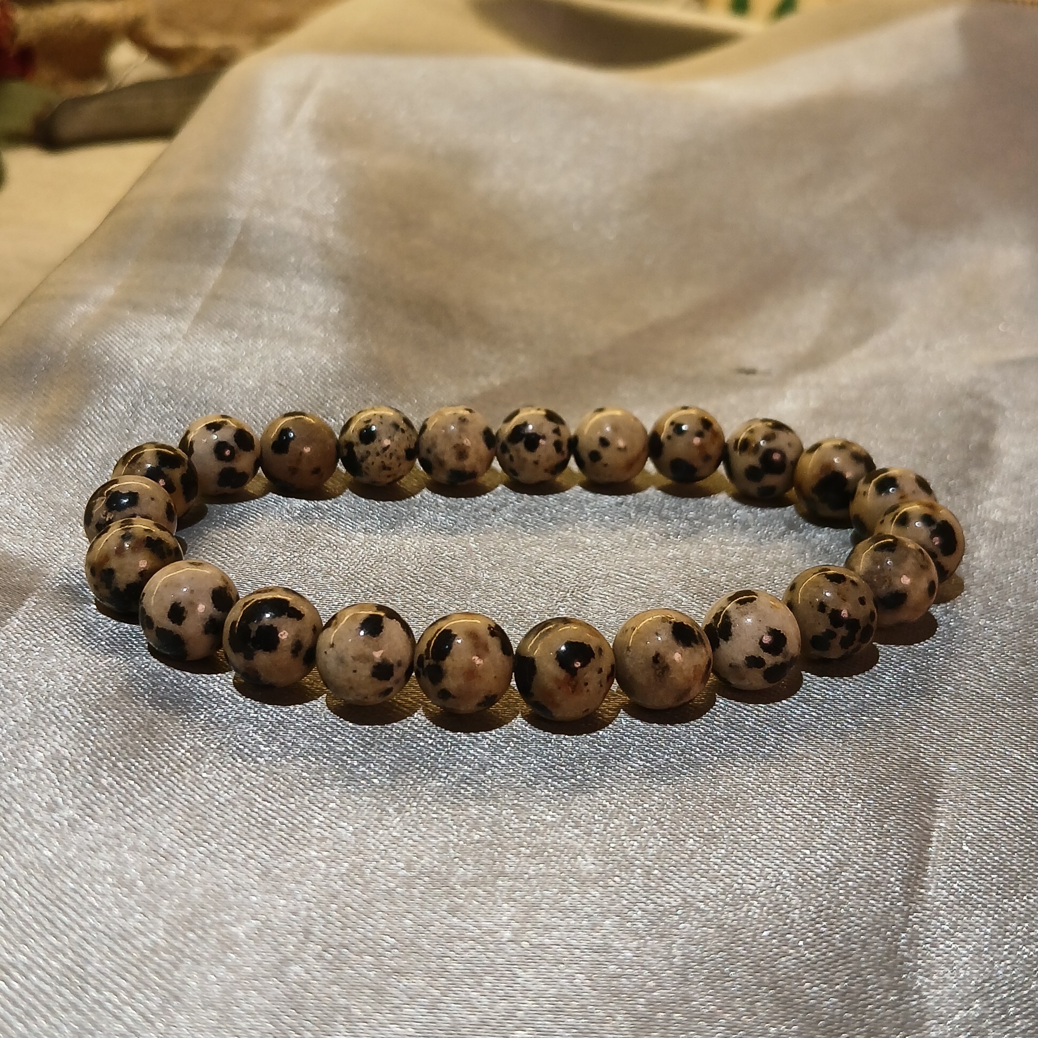 Description : Elevate your self-discovery with our Dalmatian Jasper bracelet. Known for boosting confidence and clarity, this stone supports personal growth, self-acceptance, and inner strength.