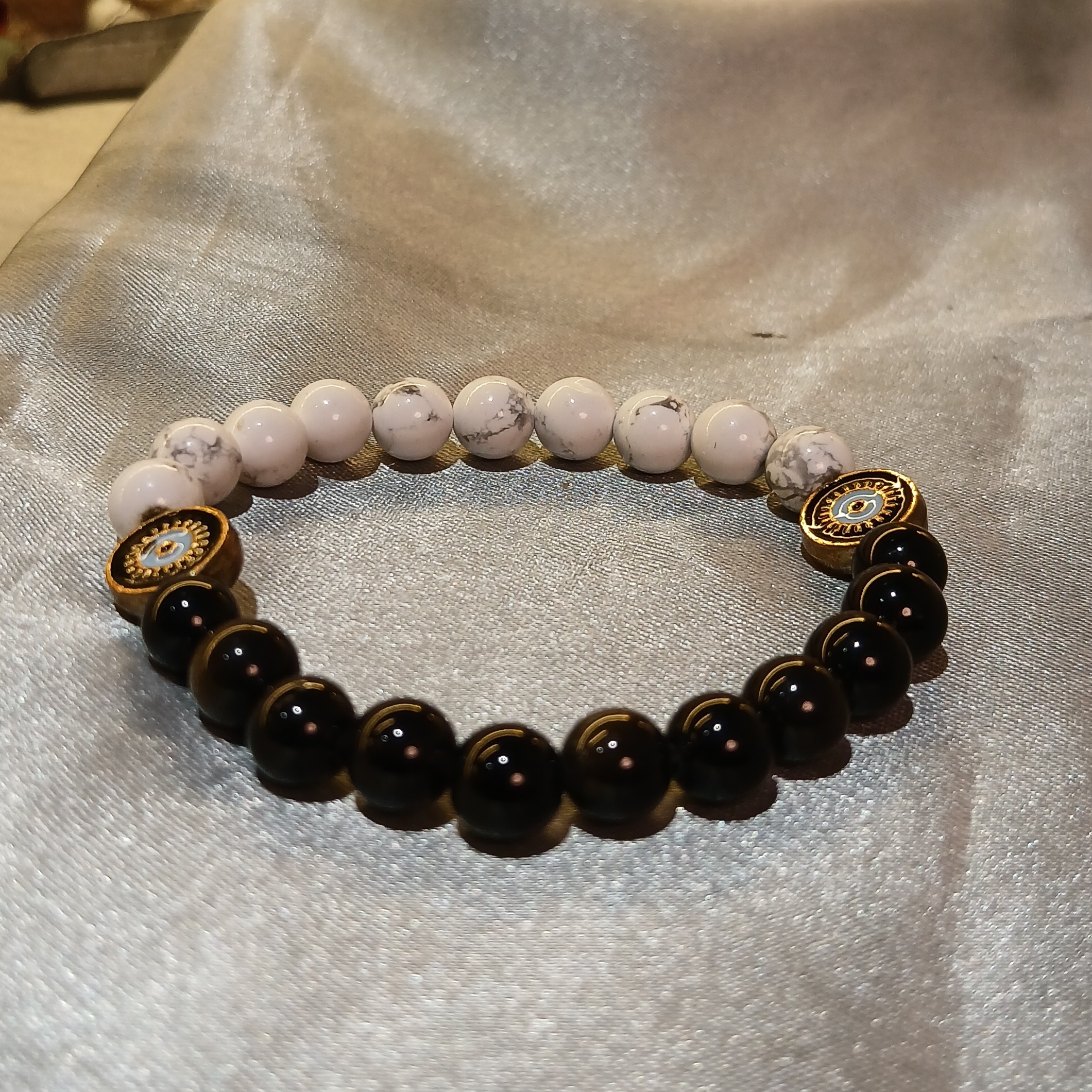 Description : Find relief from anxiety and stress with our Black Tourmaline & Howlite Bracelet. Black Tourmaline offers protection and emotional grounding, while Howlite promotes calm, peace, and mental clarity.