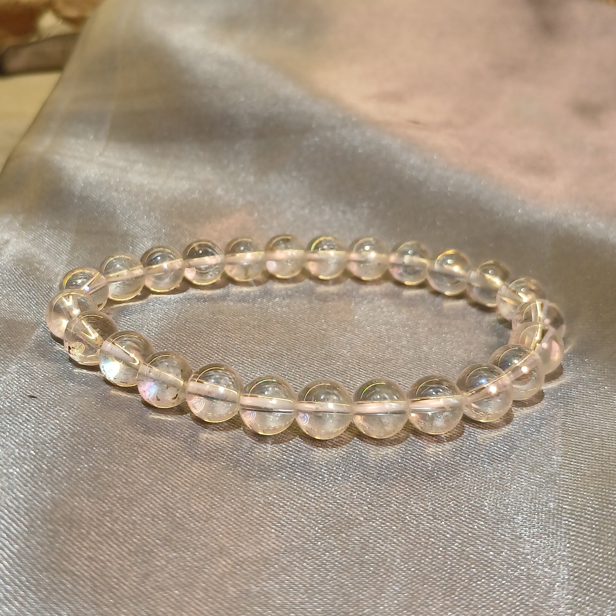 Description : Balance and align your energy centers with our Aura Quartz bracelet. Crafted from genuine Aura Quartz, this bracelet promotes harmony and clarity within your spiritual journey. Experience enhanced intuition and the potential to receive angelic guidance.