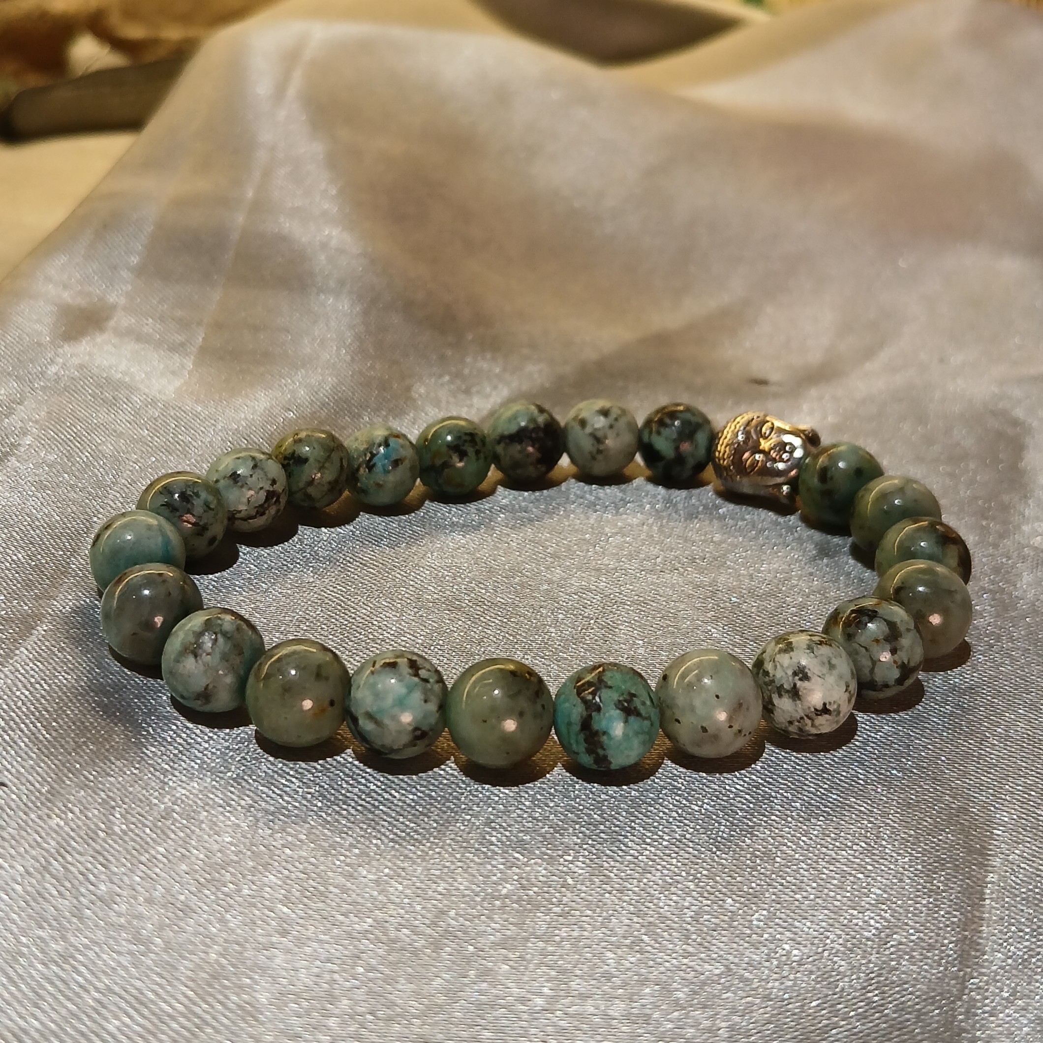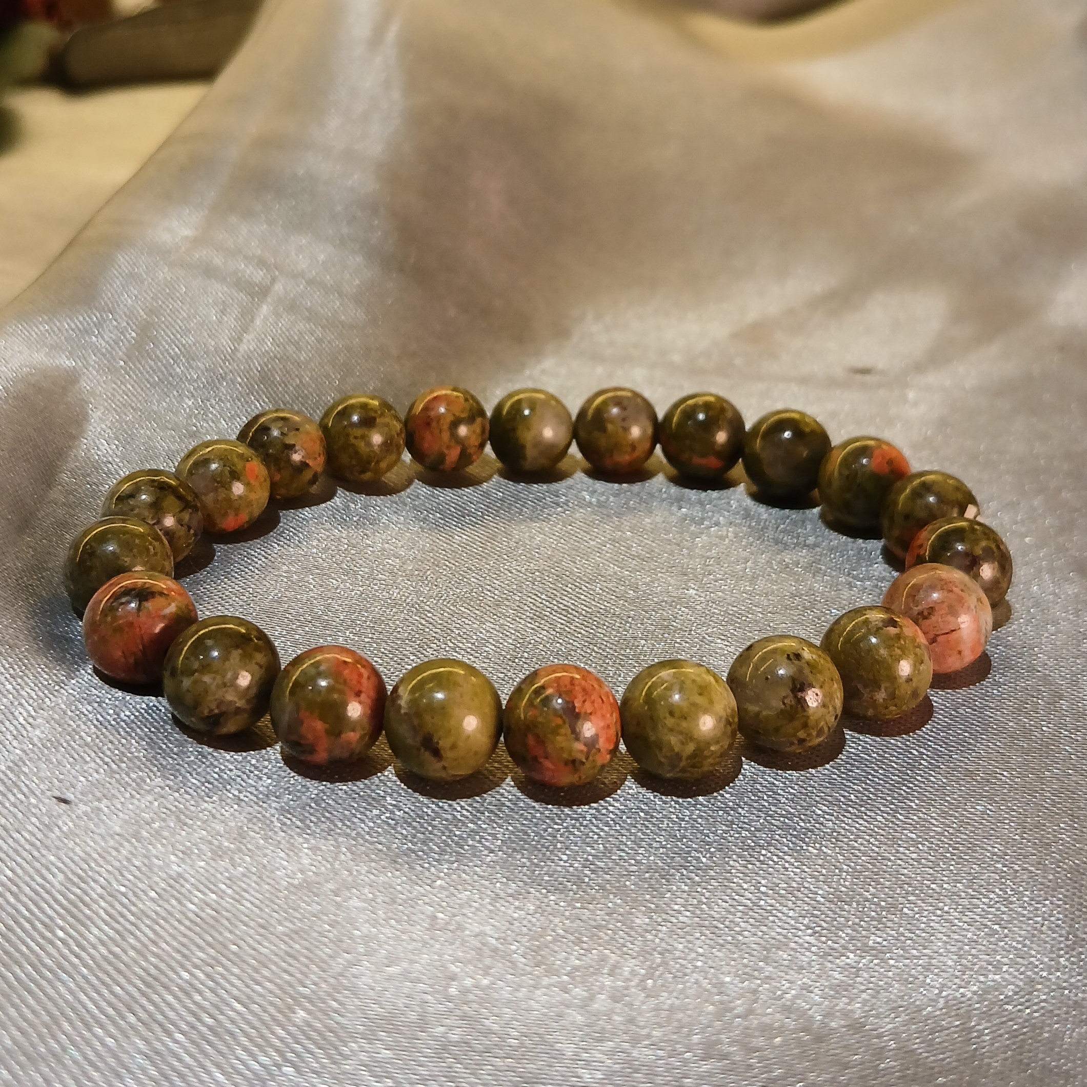 Description : Thought to stimulate the growth of hair and nails, the Unakite Bracelet is also believed to support healing of wounds and illnesses. This vibrant stone promotes overall well-being and recovery.