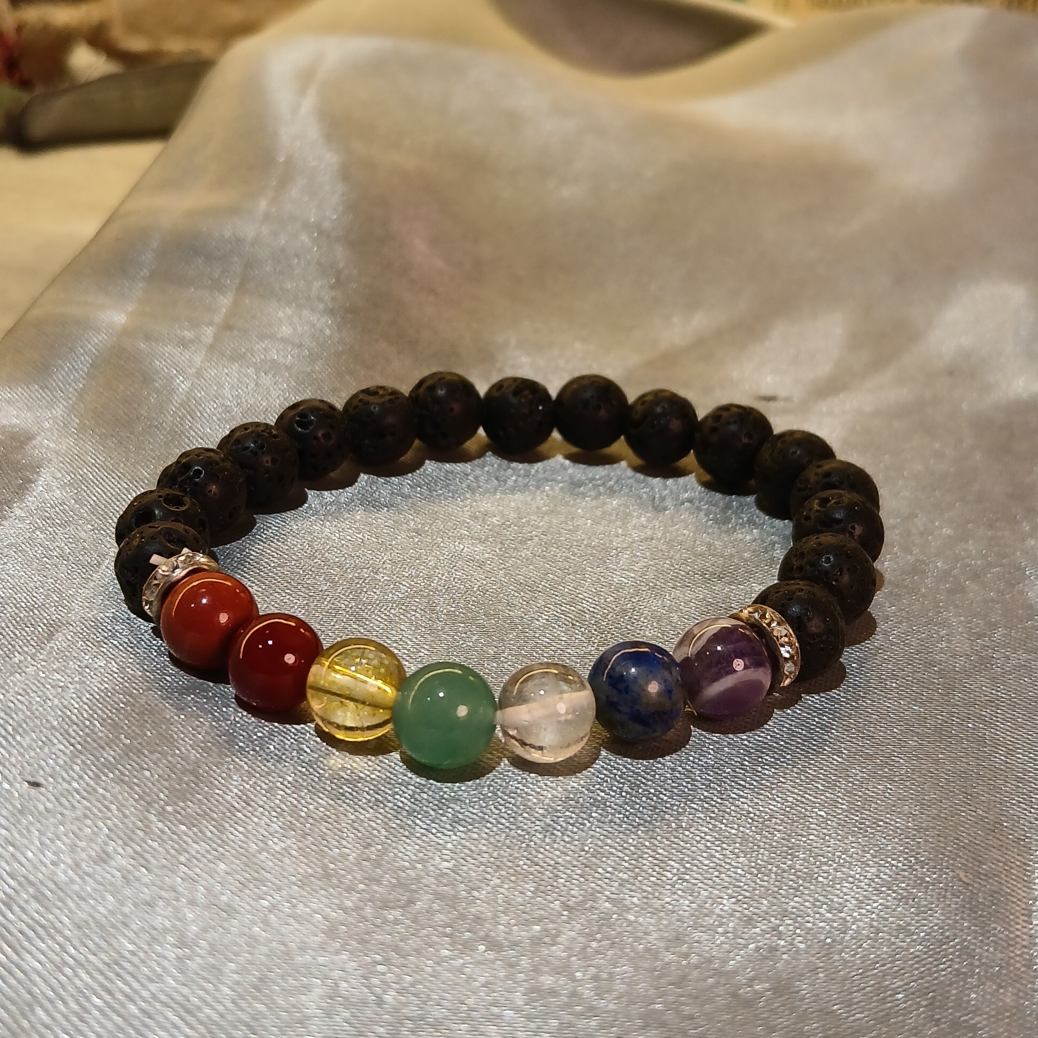 Description : Balance your energy and stay grounded with our Lava & 7 Chakra Bracelet. The natural lava stones provide grounding and strength, while the 7 chakra crystals align and activate your energy centers —promoting harmony & emotional healing.