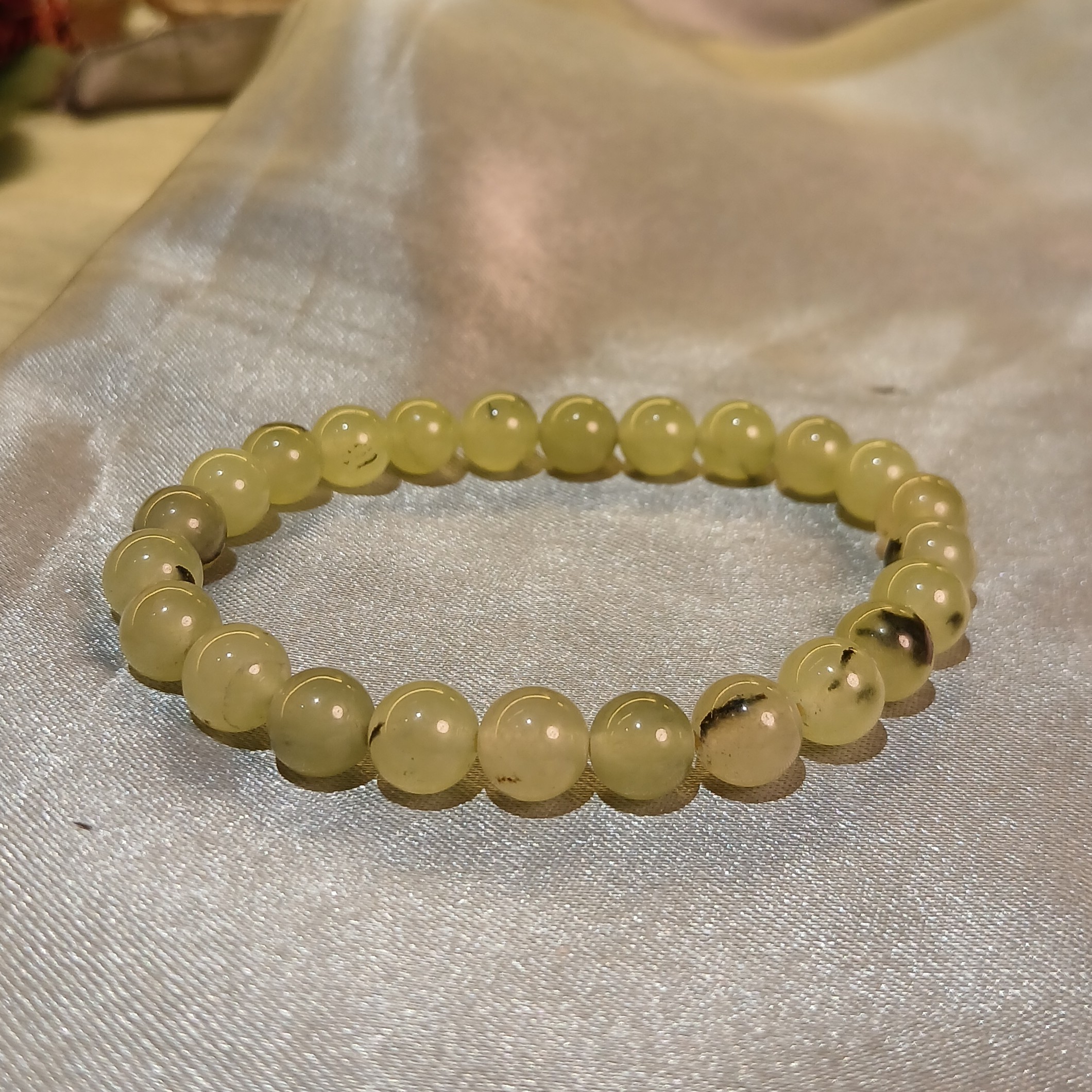 Description : Relieve stress and anxiety with our Prehnite bracelet. Crafted from genuine Prehnite stones, known for their calming properties, this bracelet promotes inner peace and relaxation. Prehnite helps ease tension, allowing you to find serenity in your daily life.