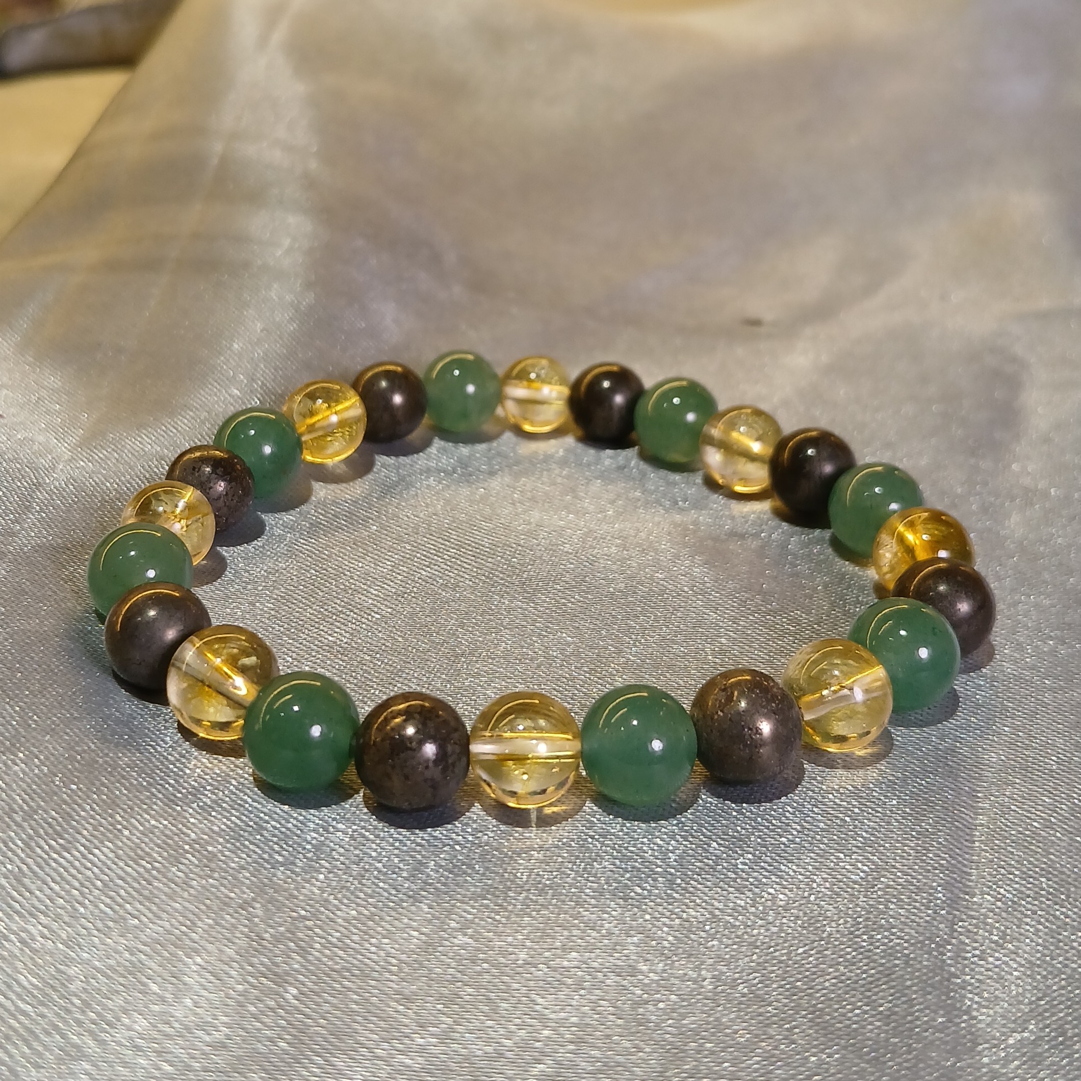 Description : The Money Attract Mixel Bracelet is a powerful blend of Pyrite, Citrine, and Green Aventurine. Together, they work to clear financial blockages, align your mindset with abundance, and attract consistent money flow.
