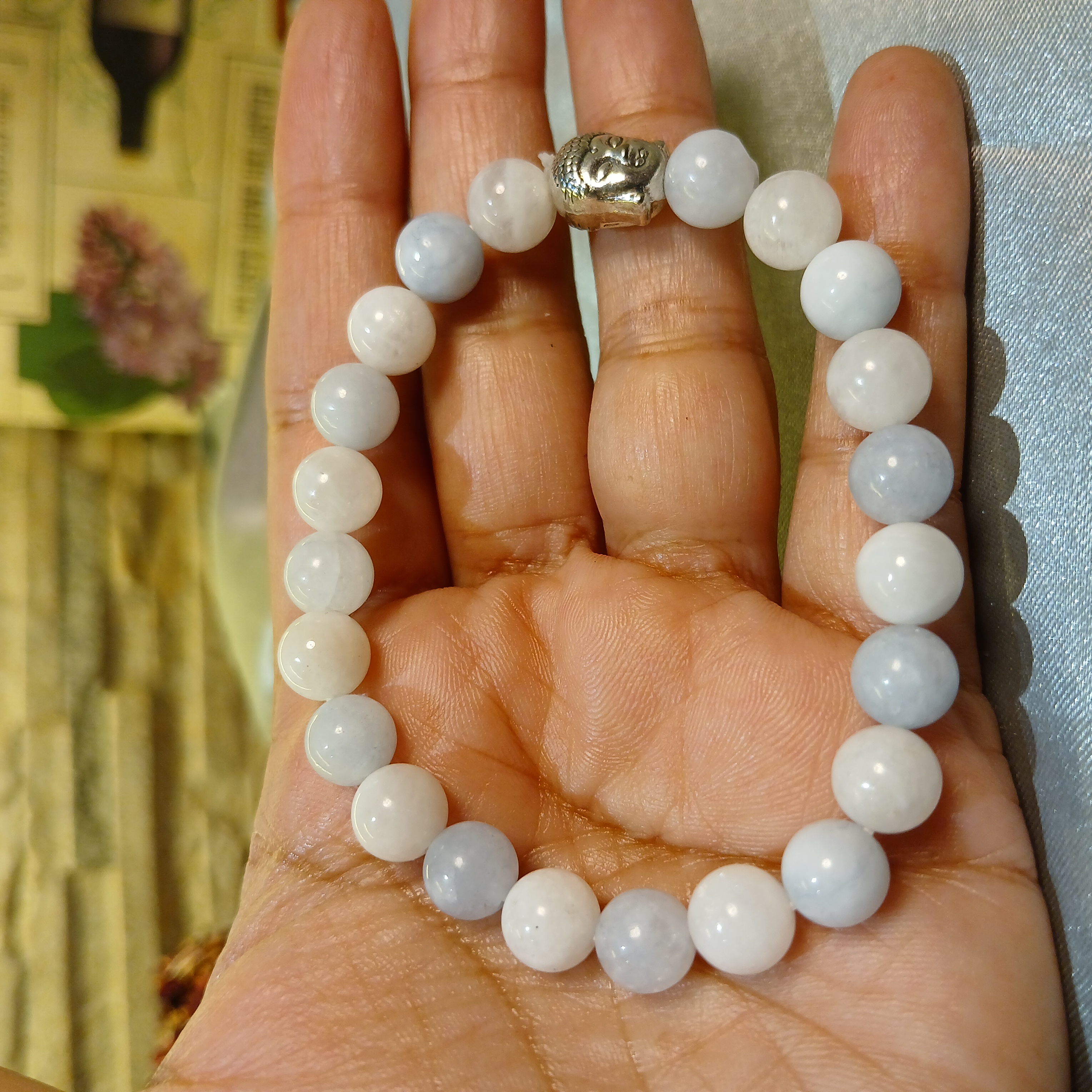 Description : Embrace luck and wisdom with our Blue Jade bracelet. Crafted from genuine Blue Jade, this bracelet embodies the energies of good fortune and insightful wisdom. Allowing Blue Jade to enhance your journey towards luck and clarity in life's endeavors.