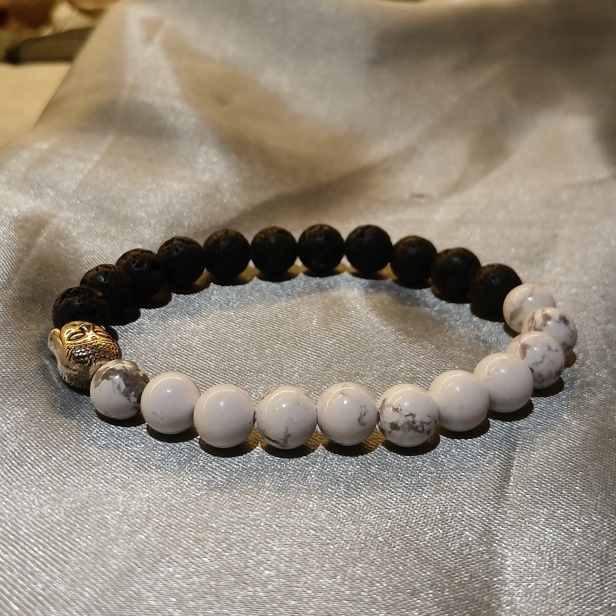 Description : Discover patience and release stress with our Lava & Howlite bracelet. Crafted from lava stone and howlite, this bracelet combines the grounding properties of lava with the calming influence of howlite.