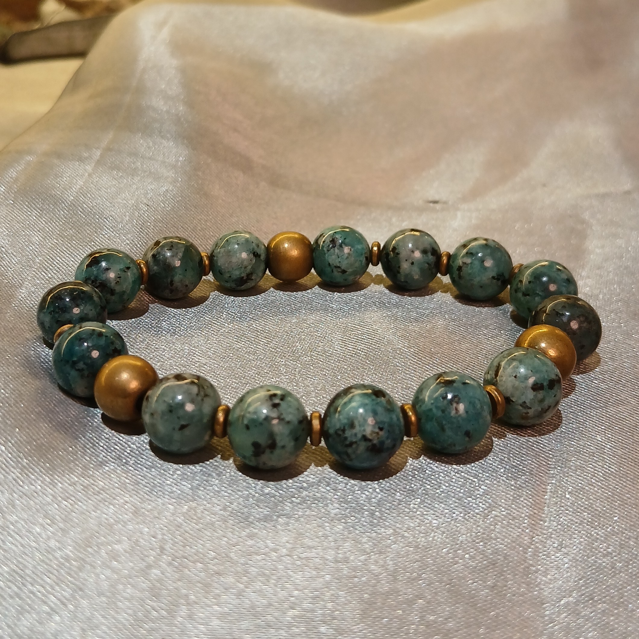 Description : Crafted with Pyrite and Green Aventurine, this bracelet attracts prosperity, success, and fresh opportunities. Pyrite magnetizes wealth, while Aventurine encourages growth and positive transformation.