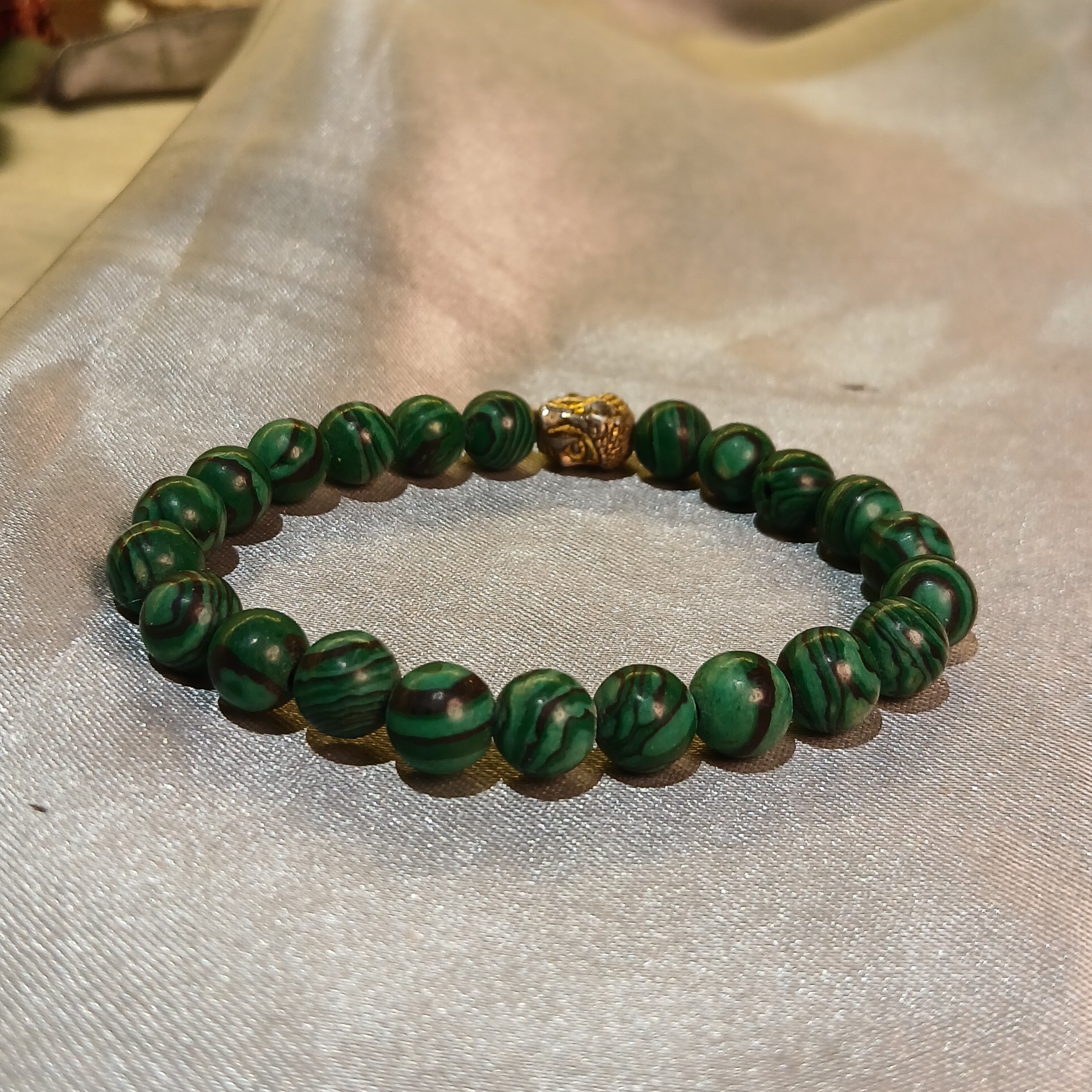 Description : Enhance your travel safety with our Malachite bracelet. Crafted with natural Malachite stones, revered for their protective properties, this bracelet serves as your guardian during journeys and drives.