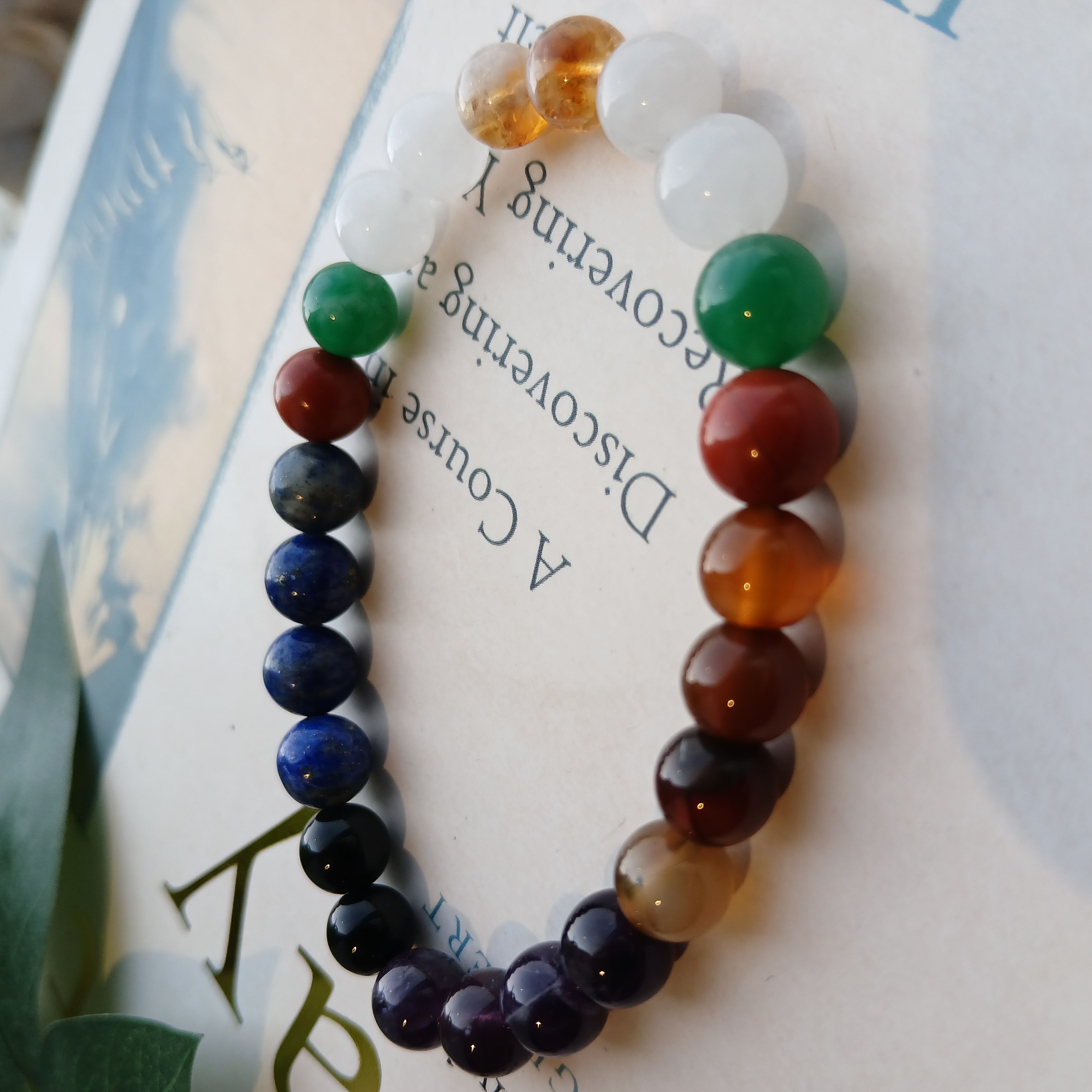 Description : This bracelet features a harmonious combination of crystals, each representing one of the seven chakras—from grounding energy at the root to divine connection at the crown. It supports emotional balance, spiritual growth, and energetic alignment.
