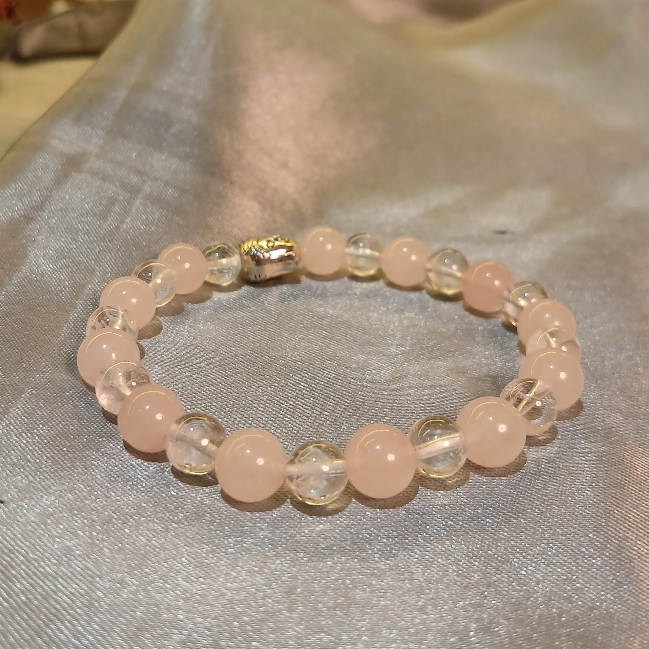 Description : This Rose Quartz bracelet enhances love and heals relationships. Known as the stone of unconditional love, Rose Quartz fosters compassion, harmony, and emotional healing, making it a perfect companion for strengthening your personal connections.