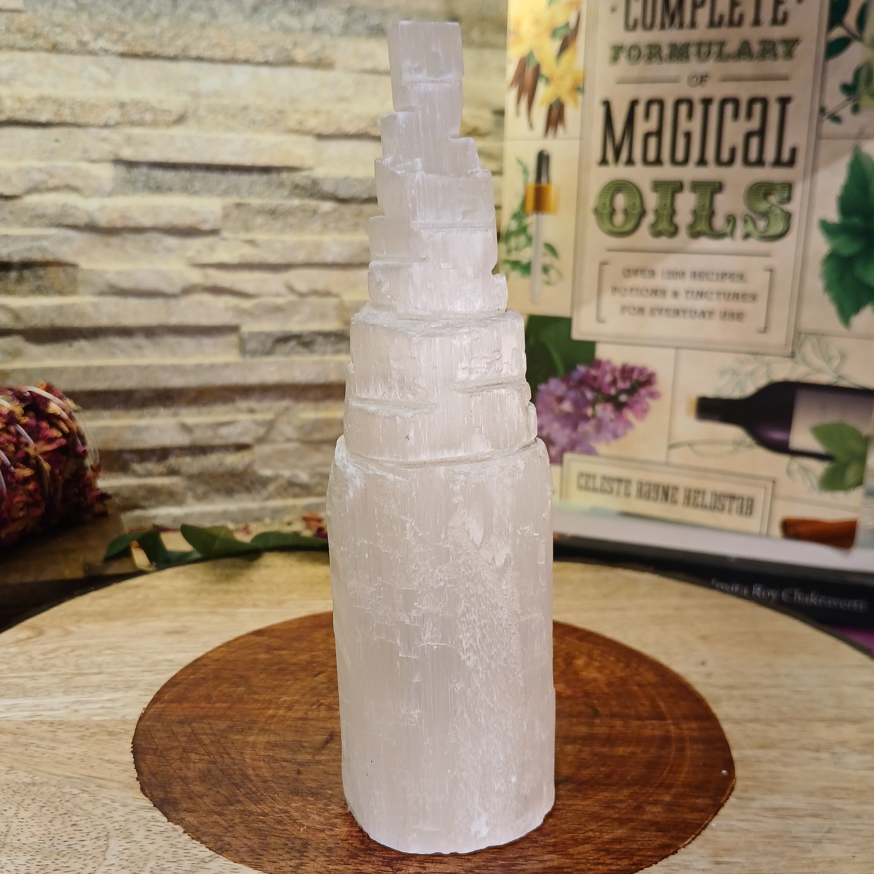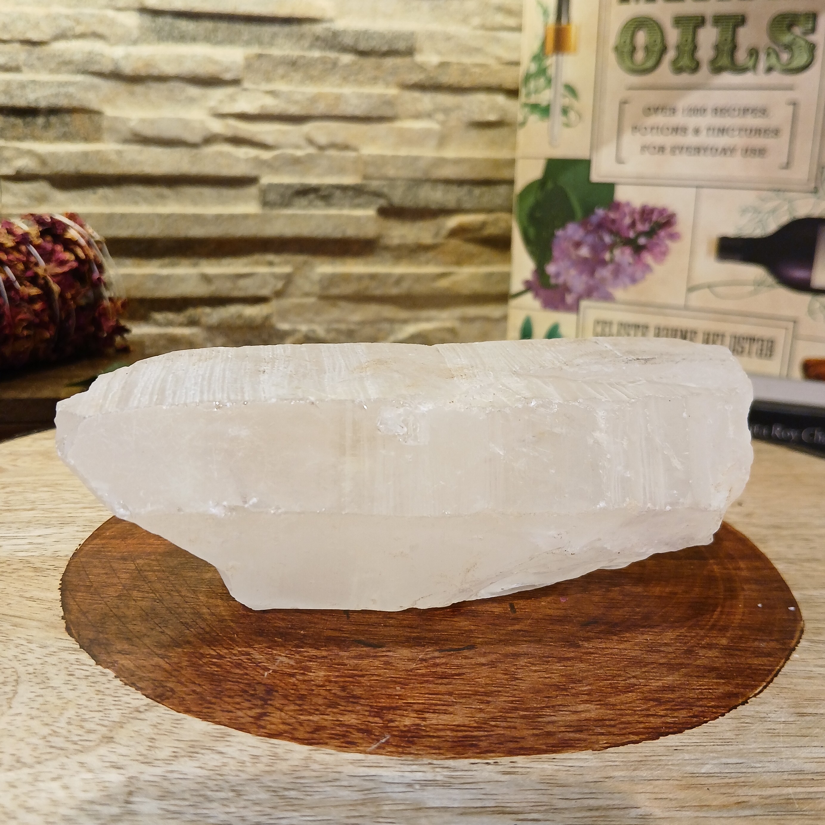 Usage : Cleanse your Selenite with incense or sage smoke, set your intention, and place it in your home, workspace, or altar to invite clarity and peace.
