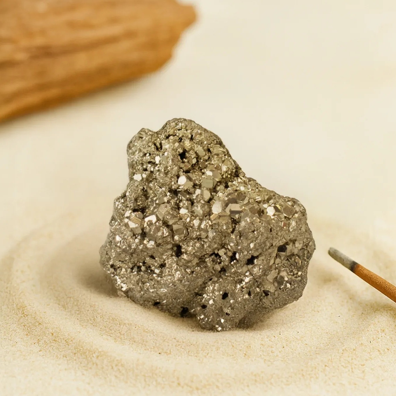 Usage : Cleanse your Pyrite cluster with incense or sage smoke, set a clear intention, and place it in your home, workspace, or cash locker to attract abundance.