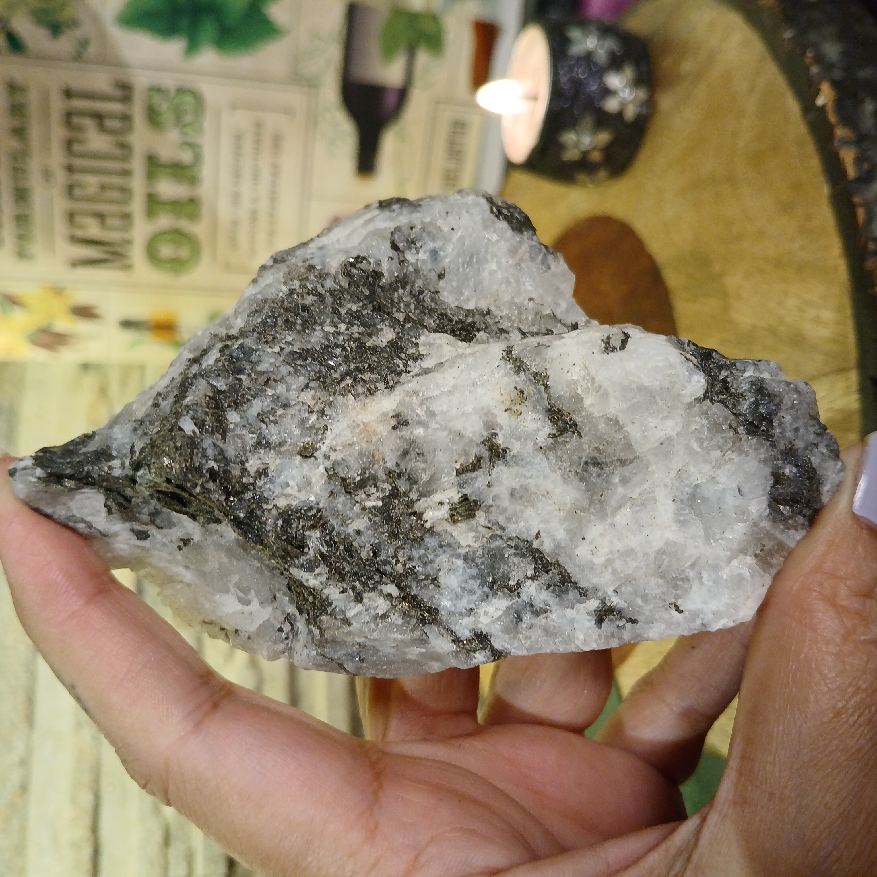 Description : Black Tourmaline Rock is a powerful shield against psychic attacks and negative energies, including the evil eye. It purifies your space, clears negativity, and promotes better mental well-being. This versatile crystal supports physical wellness by relieving bloating, aiding weight loss, and easing anxiety, stress, and fear.
