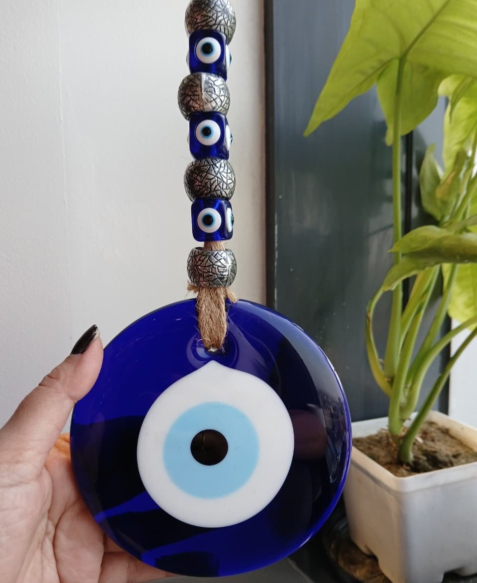 Usage : Hang this Evil Eye Hanger at the entrance of your home, office, or shop to protect your space from negative energy and unwanted attention. Cleanse it regularly with incense or camphor smoke to keep its protective power active.