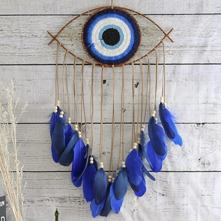 Description : An Evil Eye Dream Catcher serves as both a decorative piece and a protective charm, especially beneficial for those experiencing sleep disorders. It is believed to trap bad dreams in its web while allowing positive dreams and peaceful energy to flow through.