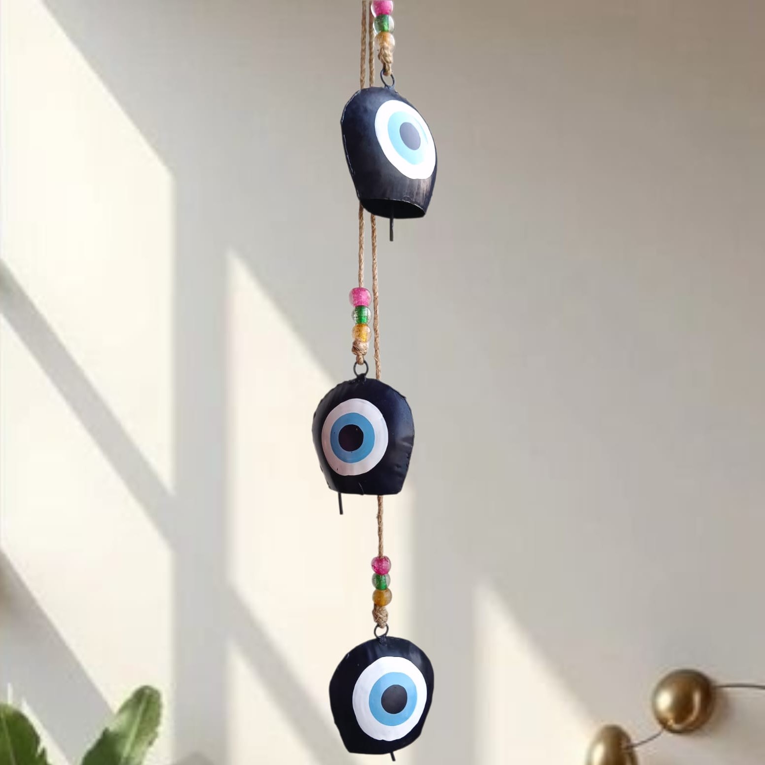 Description : This beautifully handcrafted Fortune Bell Hanging features the powerful Evil Eye symbol, believed to protect against negative energies and bring harmony to your space.
