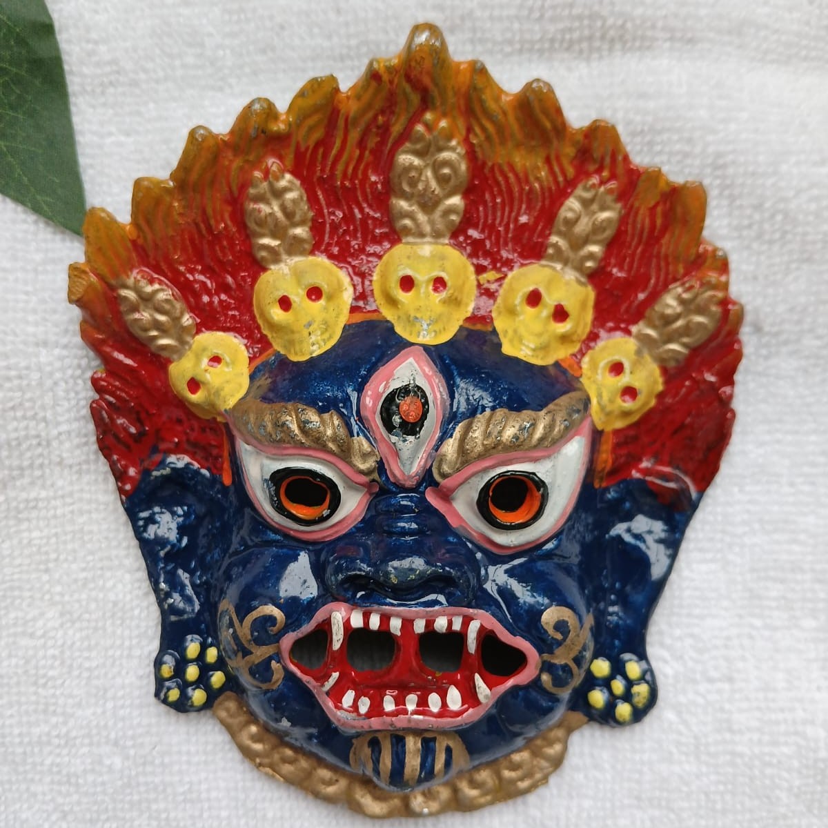 Description : This fierce and vibrant face of Kirtimukha, also known as the "Face of Glory," symbolizes protection, power, and the destruction of negativity. With its wide eyes, fiery hair, and bold expression, it’s a powerful guardian.