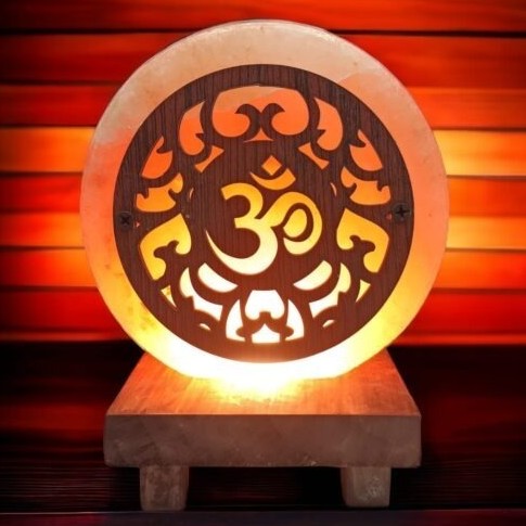 Description : This hand-carved Himalayan Salt Lamp features a sacred Om symbol, beautifully illuminated from within to create a warm, serene glow. perfect blend of wellness and divine decor for meditation rooms, altars, or living spaces.