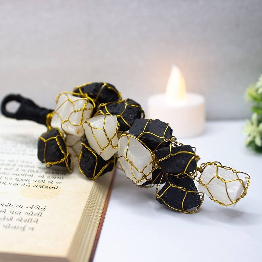 Usage : Cleanse your Black Tourmaline & Selenite Hanger with sage or incense smoke before use. Set your intention for protection and grounding. Hang it near the main entrance, bedroom, or workspace to ward off negativity.