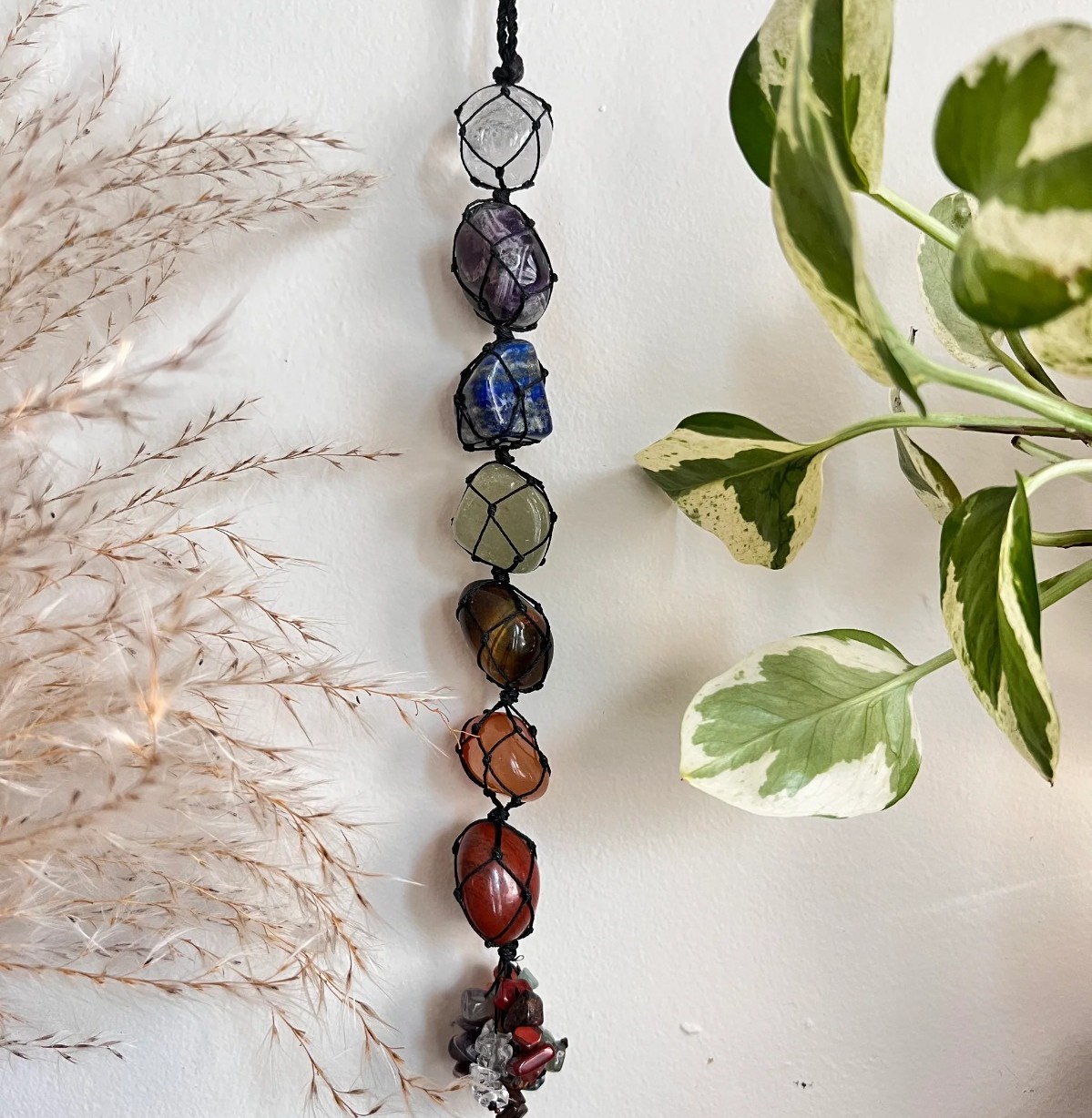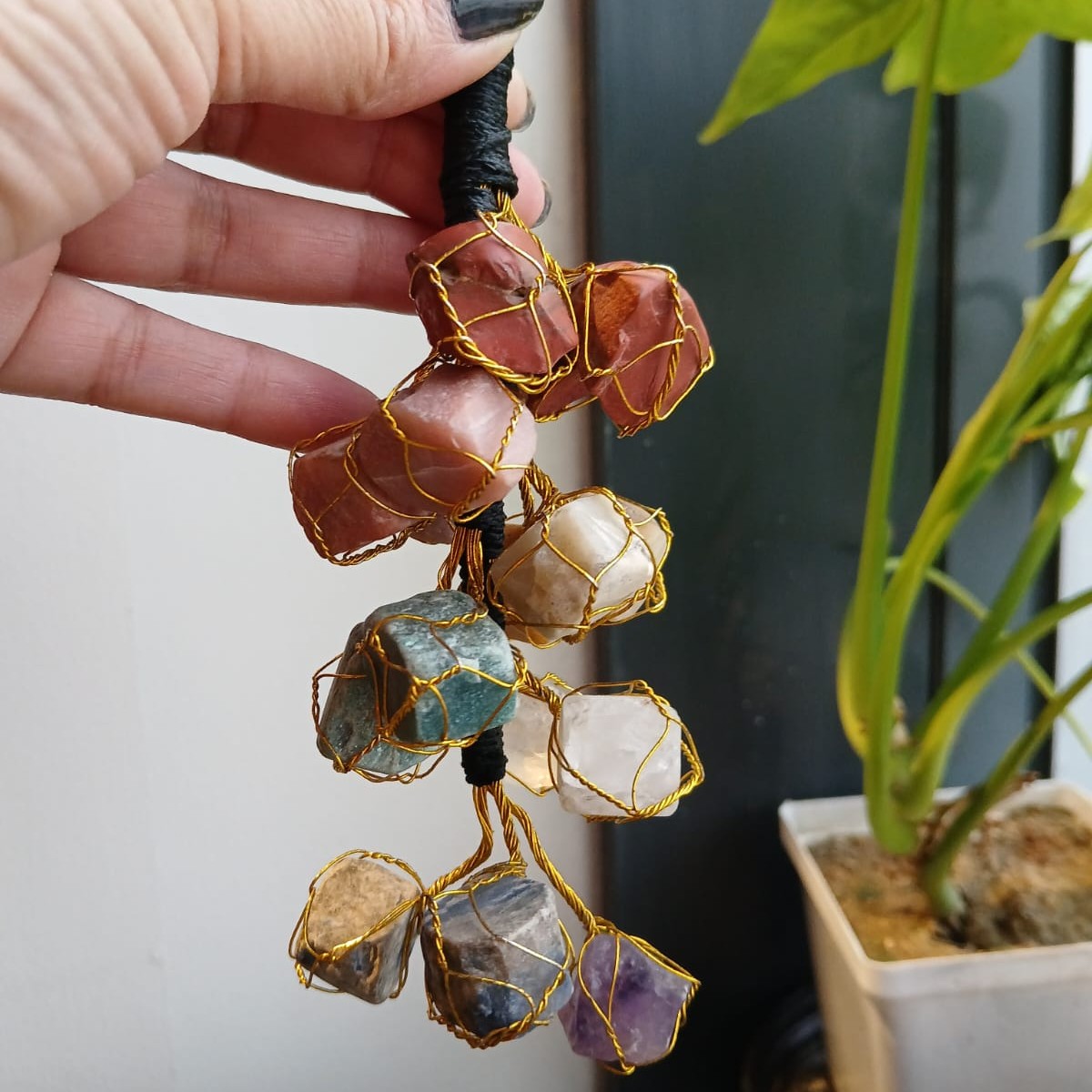 Description : Elevate your space with the Chakra Crystal Hanging, beautifully crafted with seven vibrant tumbled stones and a delicate tassel. Each crystal represents one of the body’s main energy centers, helping to restore balance, clarity, and healing.