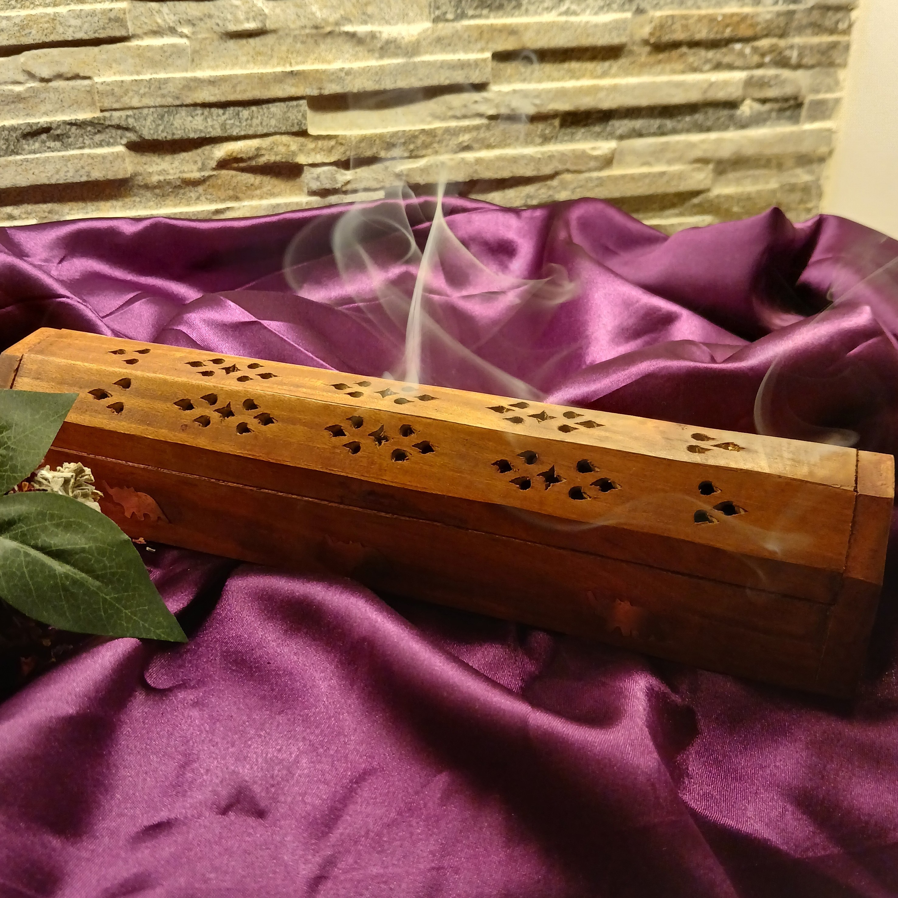 Description : This wooden incense holder is designed to both decorate your altar and keep it clean from incense ash. Its elegant craftsmanship adds a touch of natural beauty to your spiritual space while effectively managing the mess from incense use.