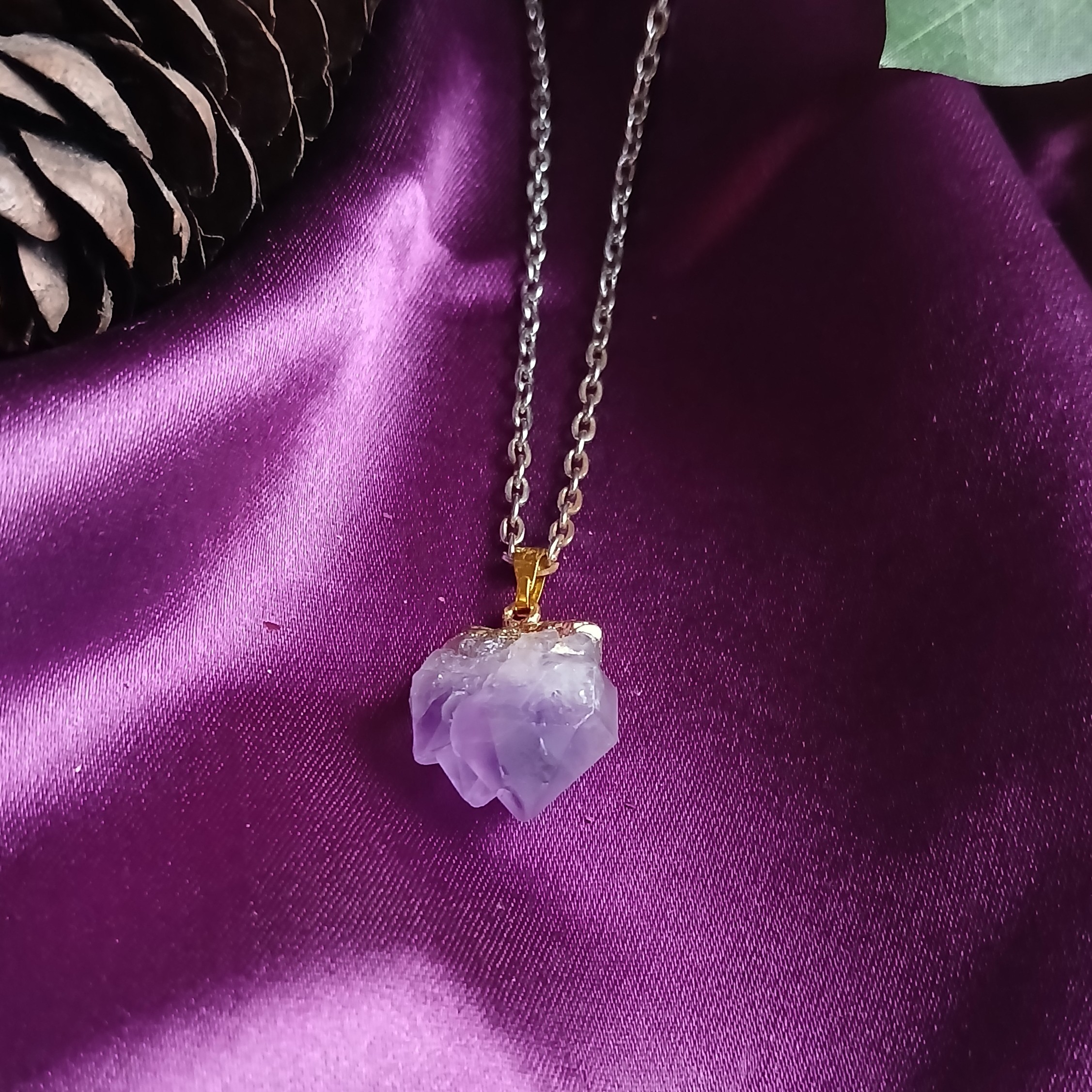Description : Embrace the raw beauty and calming energy of this Amethyst Pendant. Known for bringing peace, enhancing intuition, and supporting emotional healing, its natural form makes each piece unique.