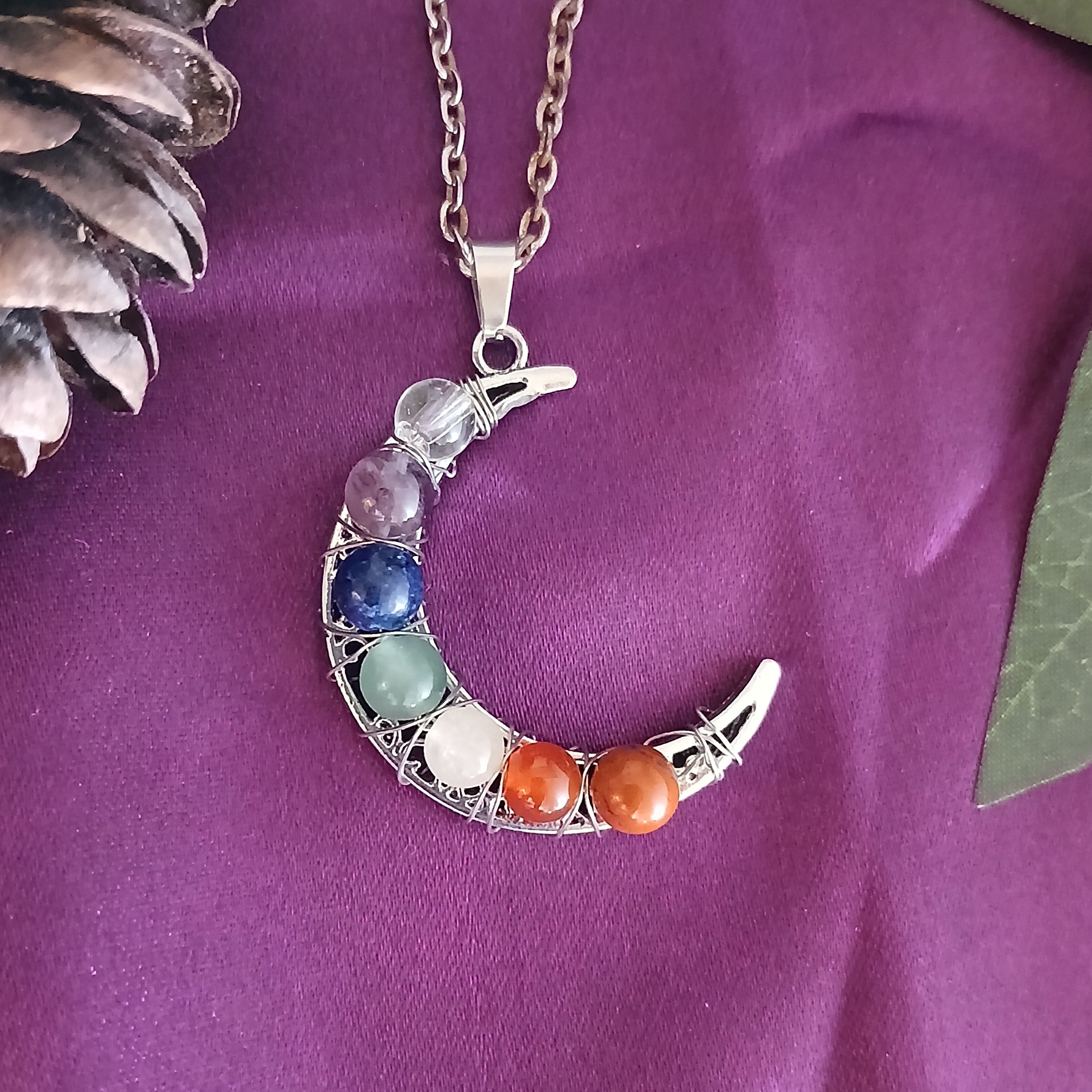 Description : Balance your energy with this moon-shaped Chakra Pendant. Designed to align all seven chakras, it supports emotional harmony, intuition, and spiritual growth—helping you stay centered and connected to your inner self.