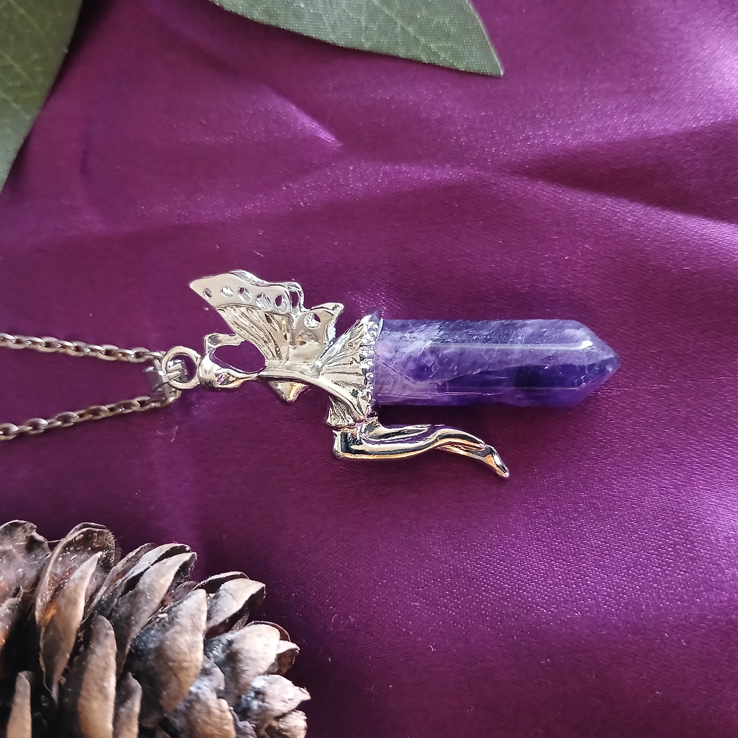 Usage : Cleanse your Amethyst Fairy pendant with sage or incense. Set your intention for peace, intuition, and protection. Wear it to stay calm, spiritually connected, and surrounded by gentle, healing energy.