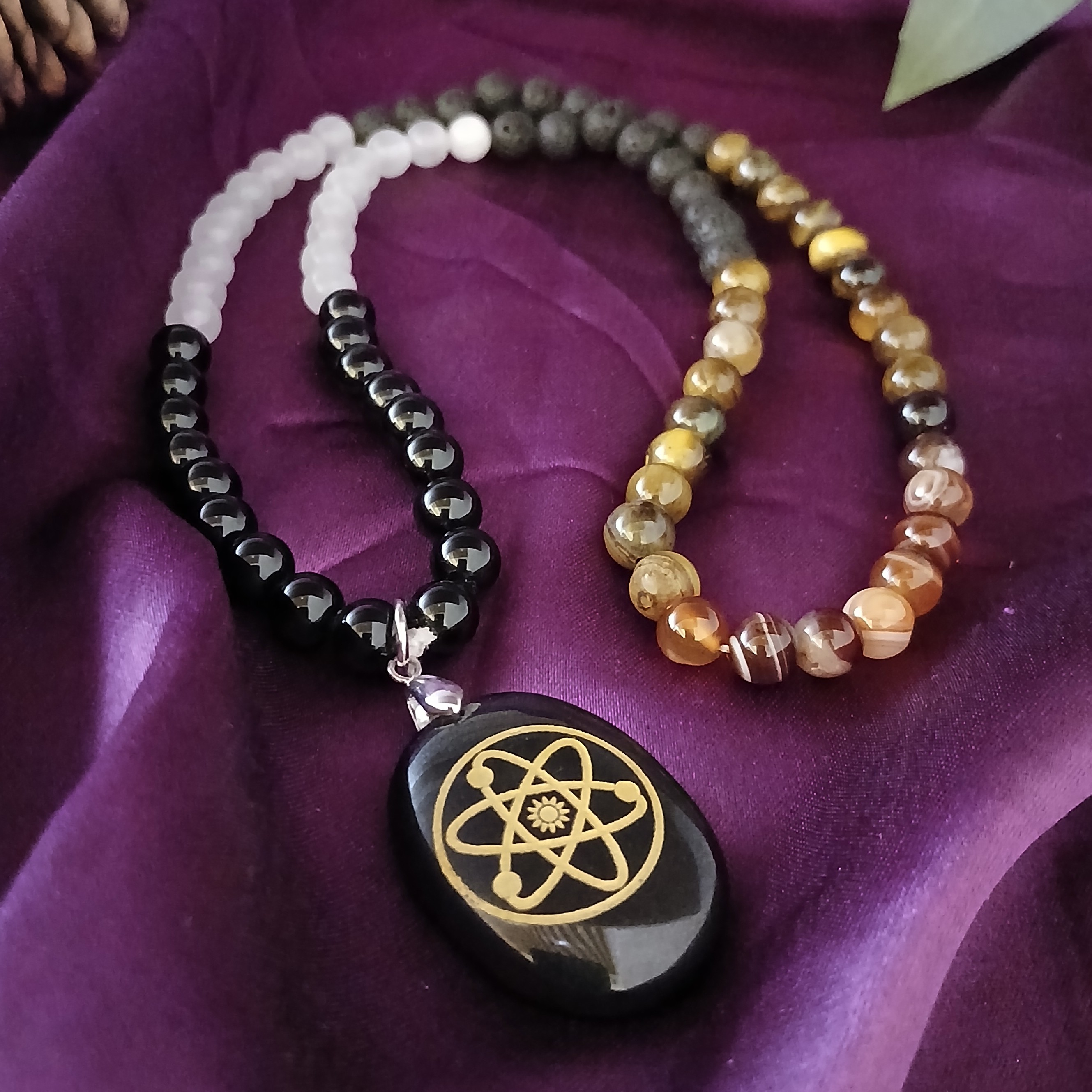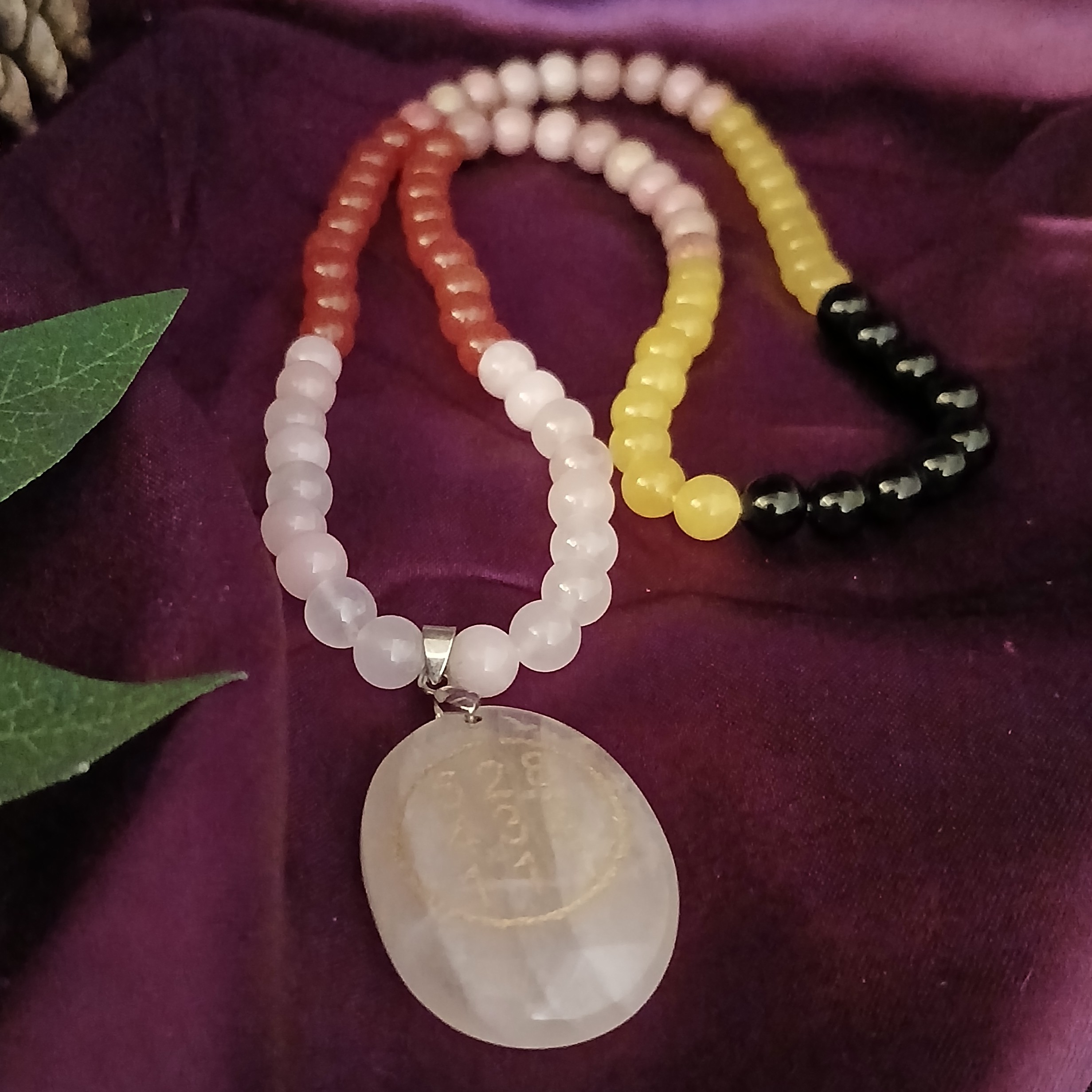 Description : This Protection Mala, infused with powerful crystals and a sacred Zibu symbol, creates an energetic shield around you. It wards off negativity, evil eye, and harmful influences—keeping you grounded, safe, and spiritually protected.