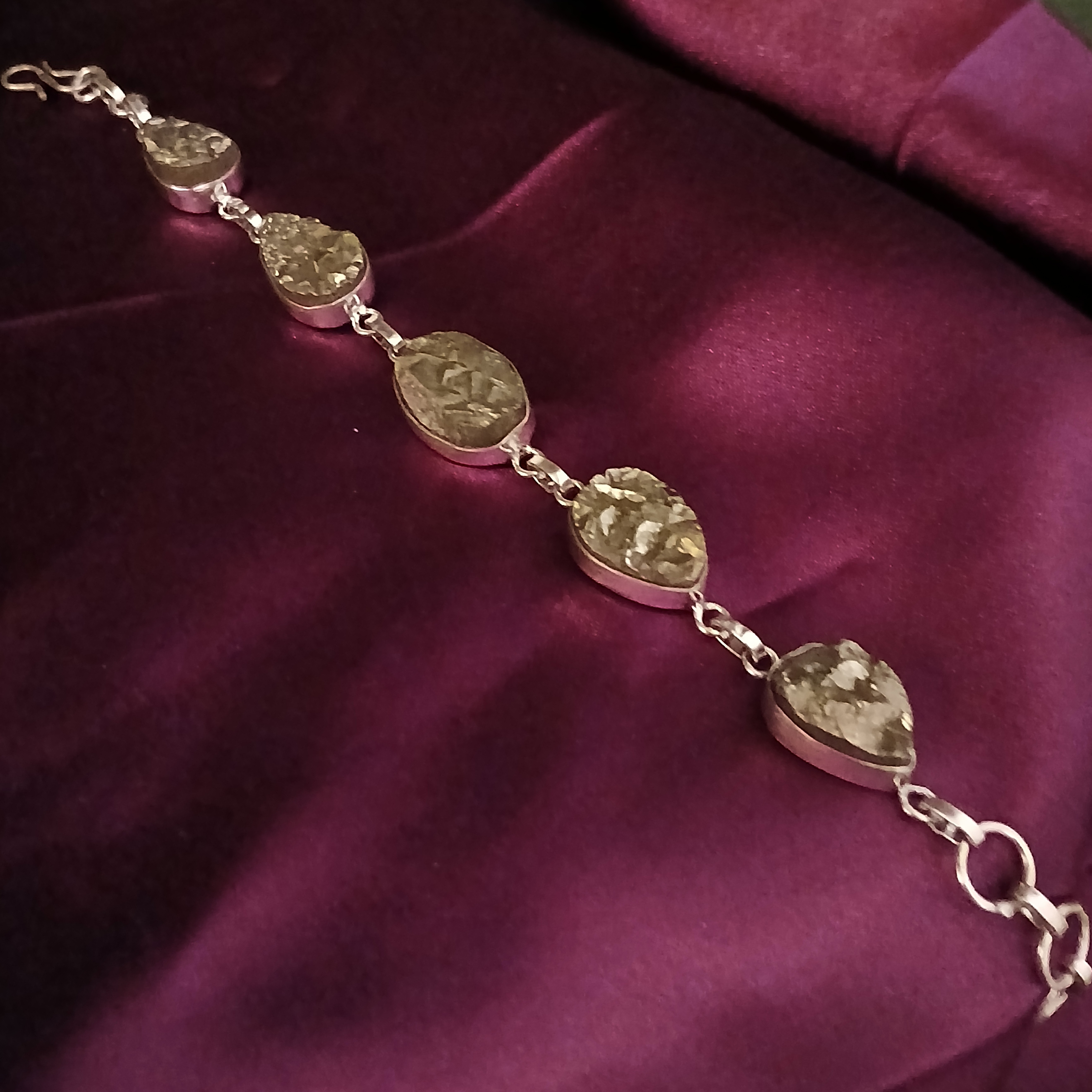 Description : Attract luck and abundance with our genuine Pyrite crystal wrist chain. Known as Fool’s Gold, Pyrite draws prosperity, boosts confidence, and grounds your energy in times of stress.