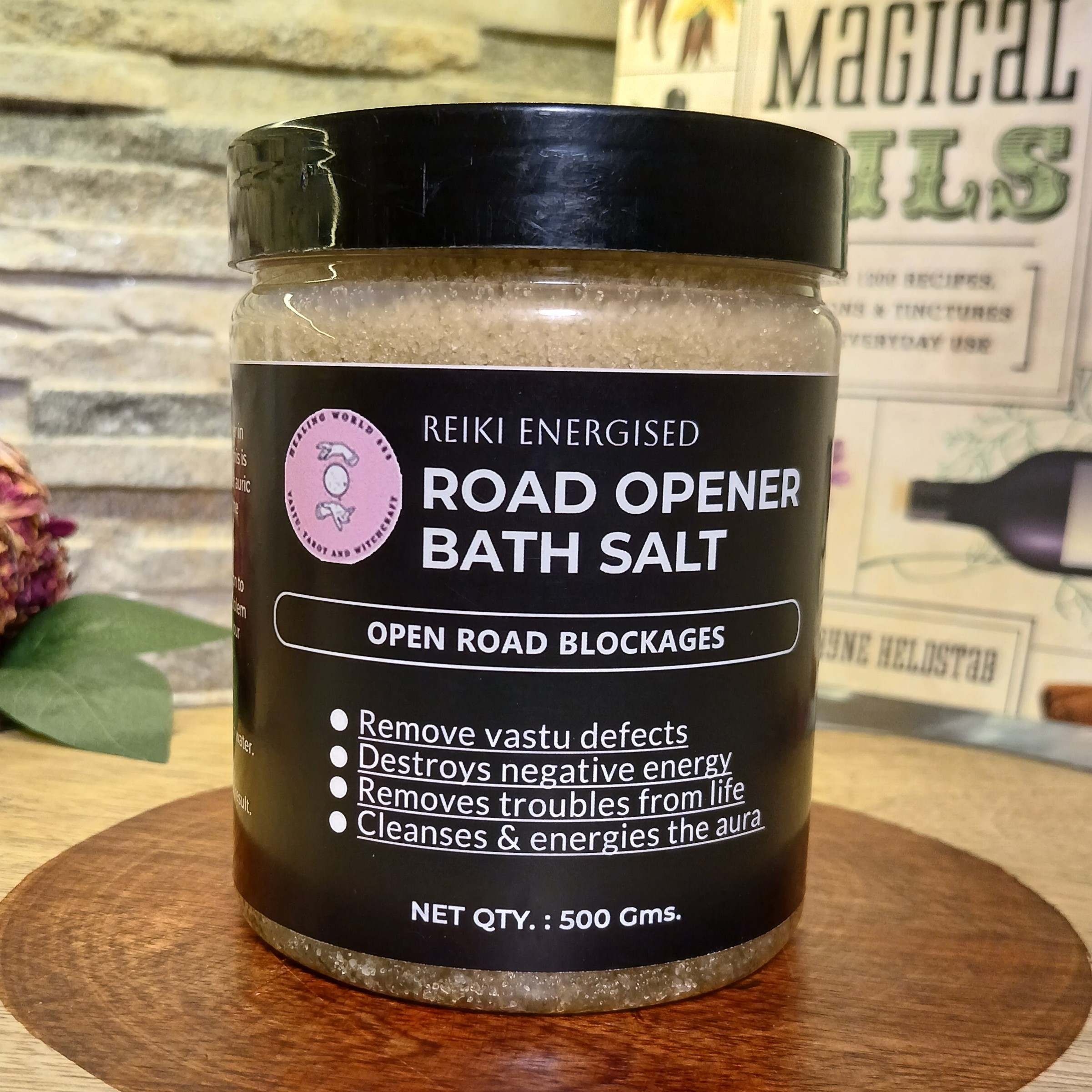 Usage : Unlock new possibilities by adding 1 teaspoon of this Road Opener Bath Salt to your bathwater daily. This potent formula helps clear obstacles and open the way for fresh opportunities.
