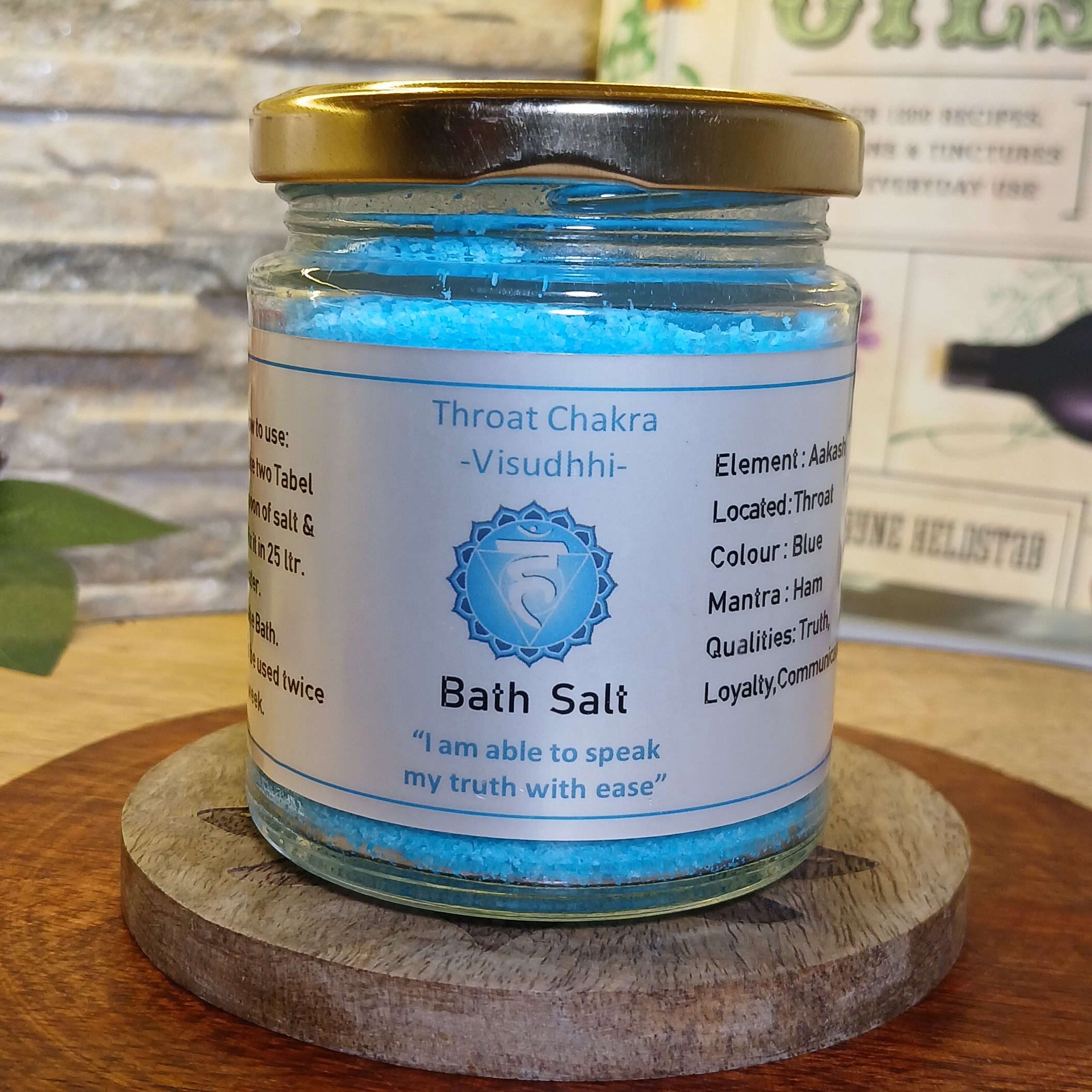 Usage : Enhance your communication and self-expression by adding 1 teaspoon of this Throat Chakra Bath Salt to your bathwater daily.