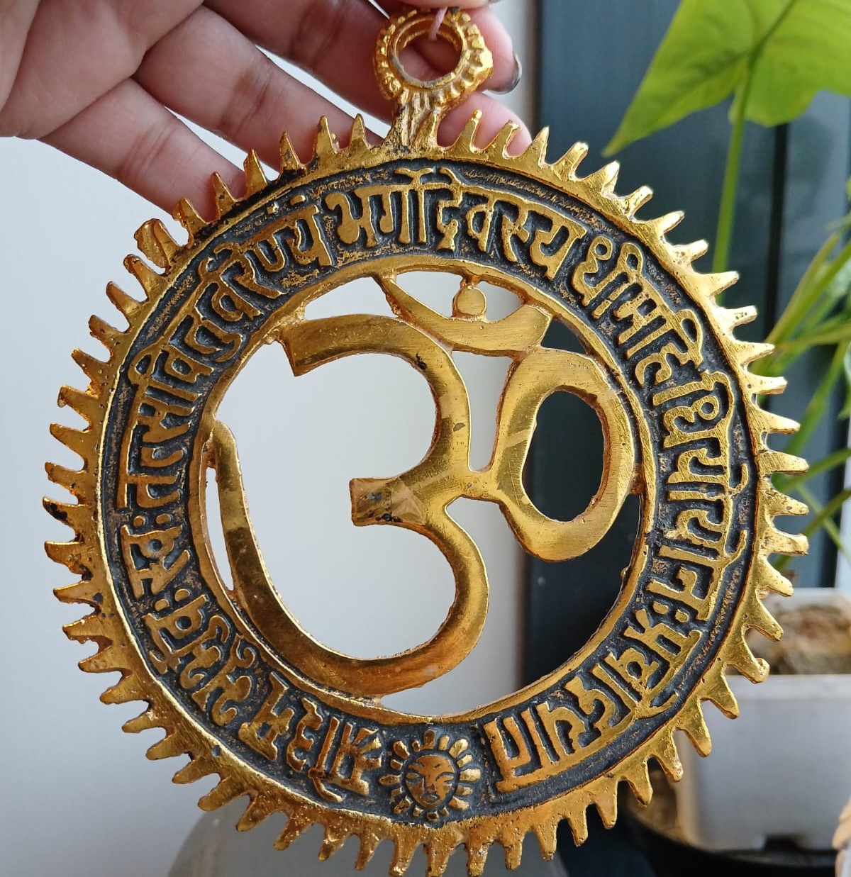 Usage : Cleanse the Om Shakti Mantra Hanger with incense or camphor smoke. Hold it in your hands and set your wish or intention for strength, or fulfillment of a desire. Then hang it at your entrance, workspace, or altar to activate the divine energy of Shakti.