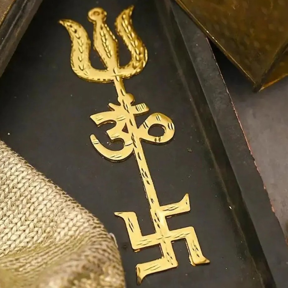 Description : The Trishakti Vastu Yantra combines three sacred symbols—Trishul, Om, and Swastik—to form a powerful shield against negativity, evil eye, and Vastu defects. Trishul offers protection, Om balances energy, and Swastik attracts prosperity and well-being.